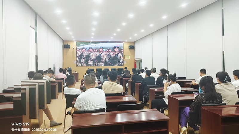 9月3日上午9:00时,贵州弘波质量检测有限公司组织全体职工观看了盛大的阅兵仪式。公司领导及员工齐聚公司会议室,通过电视直播共同见证了这一庄严而激动人心的时刻。